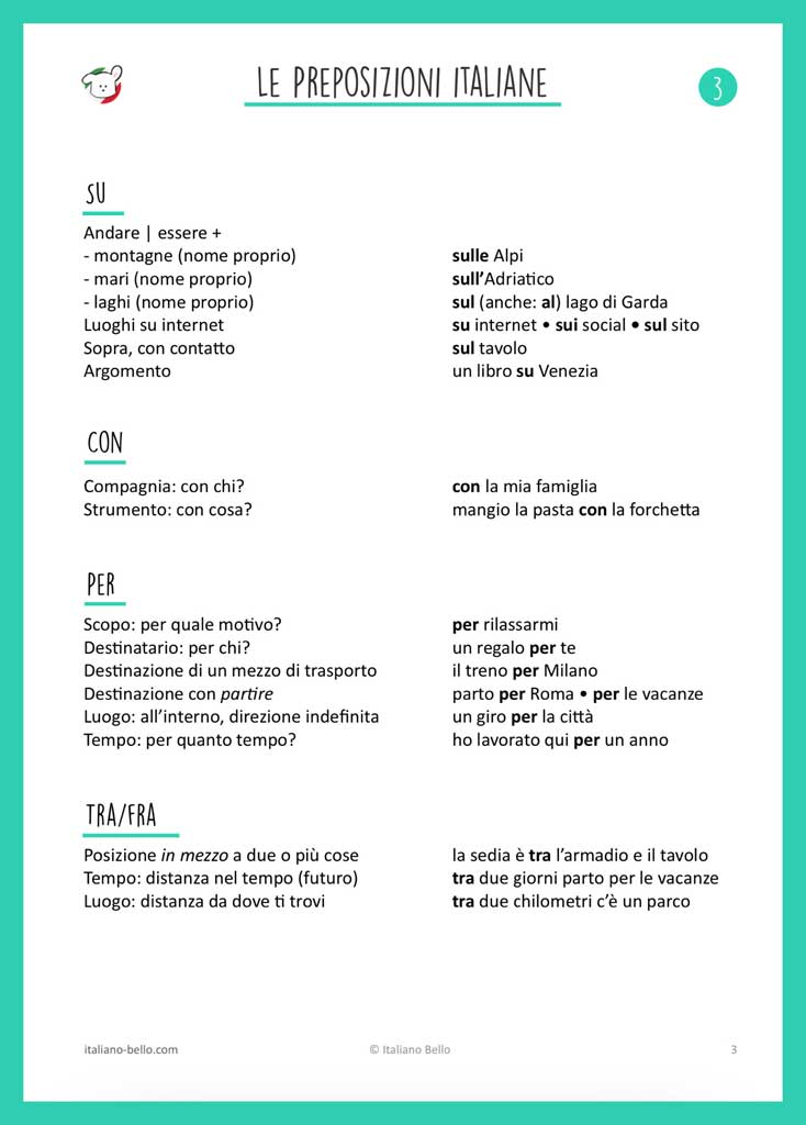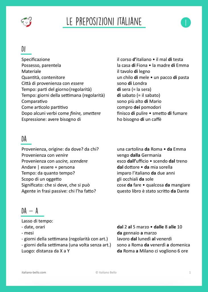 Le preposizioni italiane: Eine Übersicht aller italienischen Präpositionen und ihre wichtigsten Funktionen. Beachte, dass die Präpositionen manchmal mit den Artikeln verschmelzen. Wie Präpositionen und Artikel verschmelzen, kannst du in unserem Beitrag über zusammengesetzten Präpositionen nachlesen.