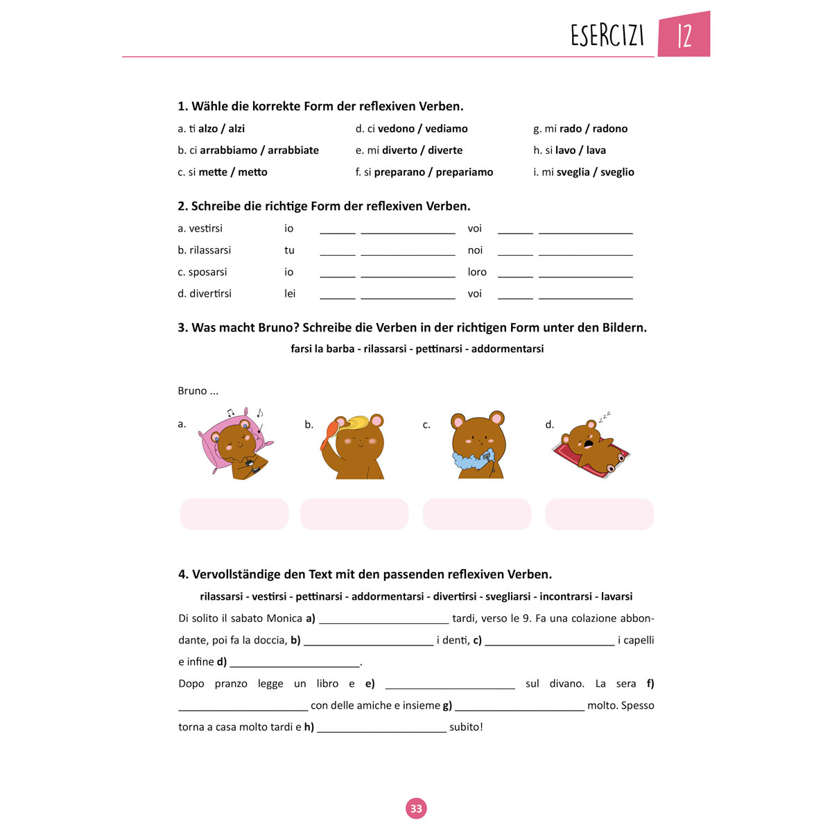 - Niedlich illustrierte Beispiele mit Bär Bruno und Kater Romeo
