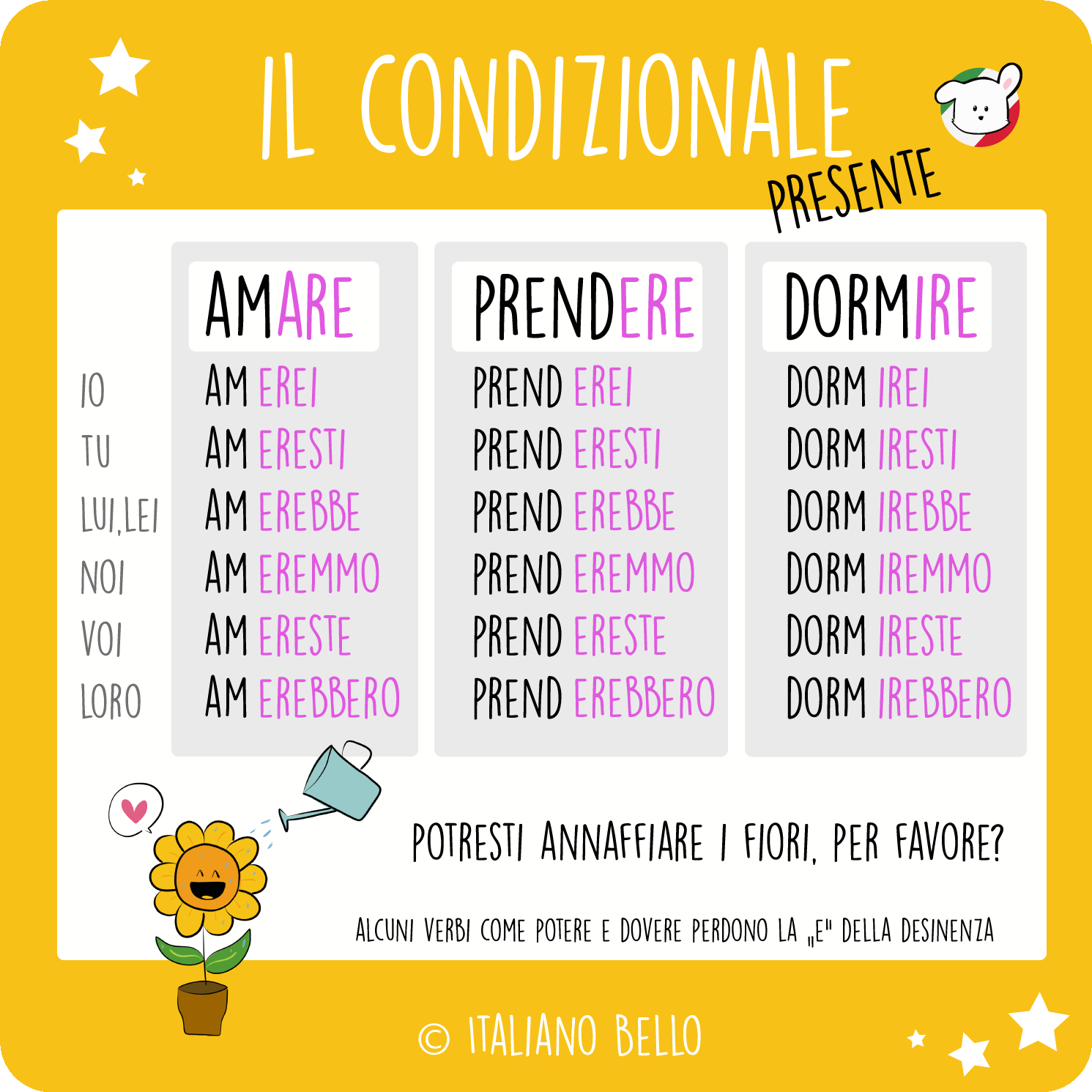 | lui, lei | amerebbe | prenderebbe | dormirebbe |