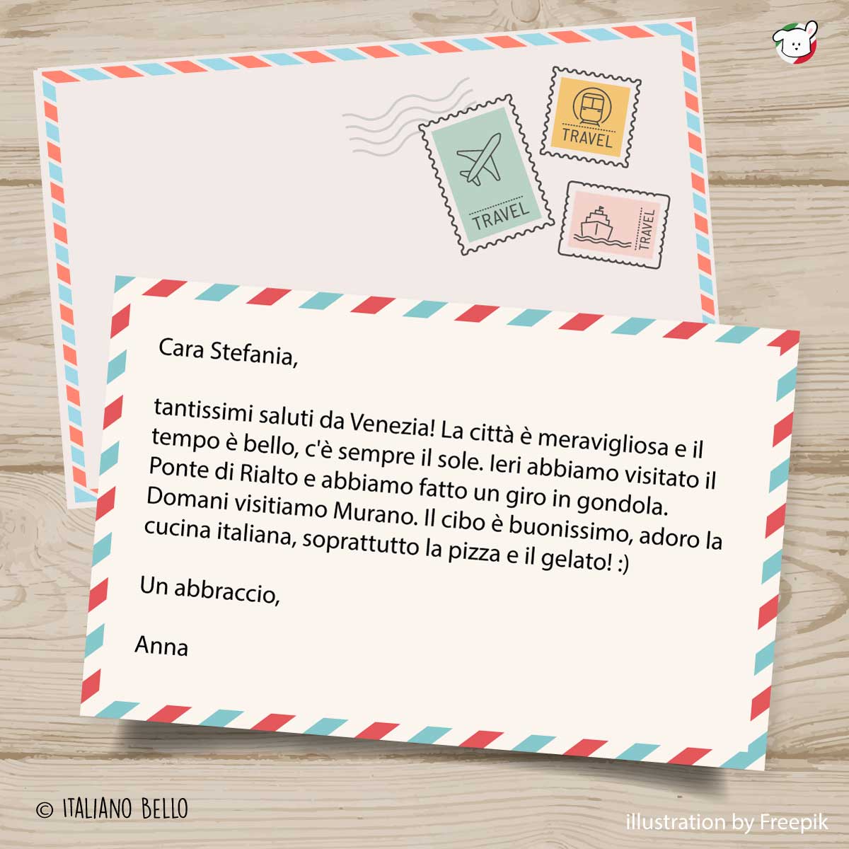 tantissimi saluti da Venezia! La città è meravigliosa e il tempo è bello, c’è sempre il sole. Ieri abbiamo visitato il Ponte di Rialto e abbiamo fatto un giro in gondola. Domani visitiamo Murano. Il cibo è buonissimo, adoro la cucina italiana, soprattutto la pizza e il gelato!